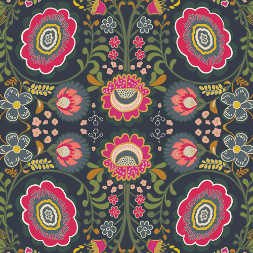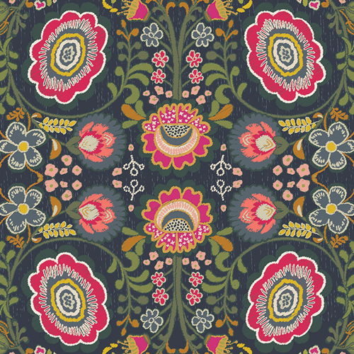 The last installment of Pat’s Indie trilogy, is crowned with Indie Folk. This collection expresses a visual story of Pat’s love for folklore and the world around her. Ornamental florals and minimalistic ethnic designs are splashed with saturated colors for sewing eclectic projects with a trendy twist.